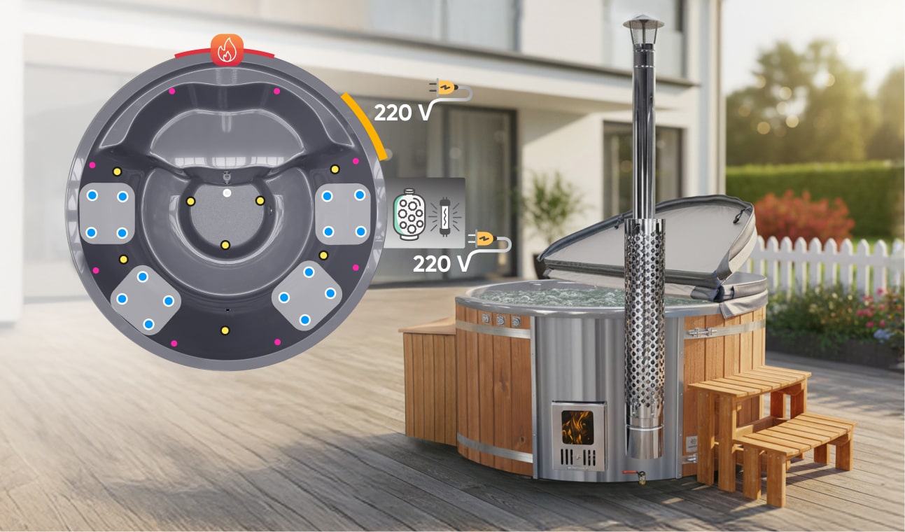 Thanks to the jet combinations, our wood-fired hot tubs can rival the hydrotherapy experience of electric spas.
