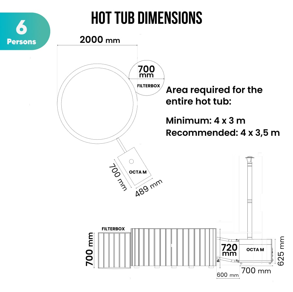 Wood Fired Hot Tub with Jets | Integrated Verta™ stove, Sand filter & UV-C | 16 Hydro jets | 4–6 seater
