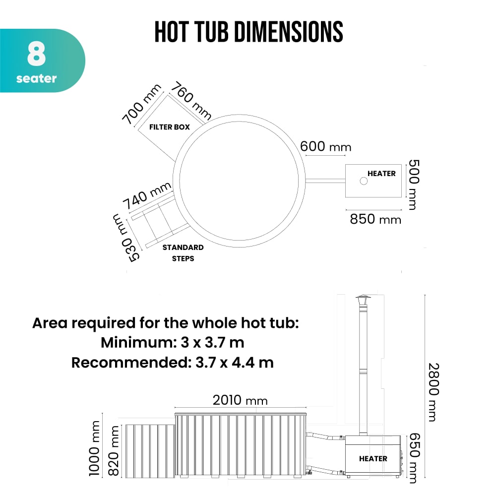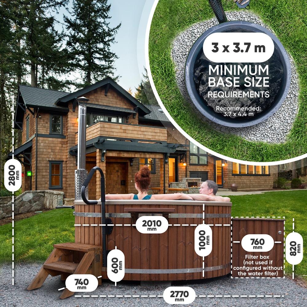 Wood Fired Hot Tub with Jets | Integrated Horizon™ stove sand filter & UV-C | 16 Hydro jets | 4–8 seater