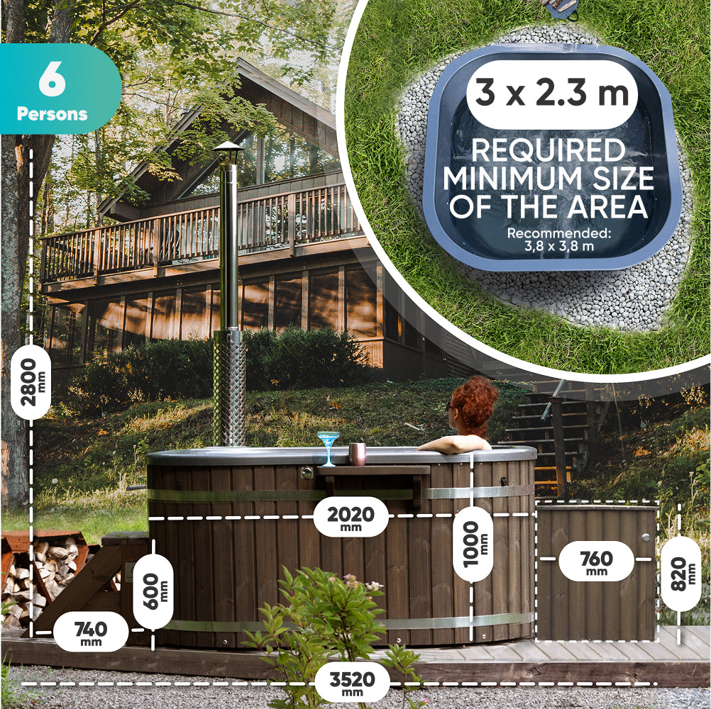 Wood Fired Hot Tub with Jets | Integrated Verta™ stove, Sand filter & UV-C | 16 Hydro jets | 4–6 seater