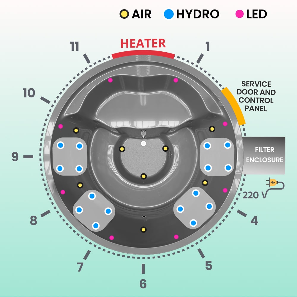 Wood Fired Hot Tub with Jets | Integrated Horizon™ stove sand filter & UV-C | 16 Hydro jets | 4–8 seater