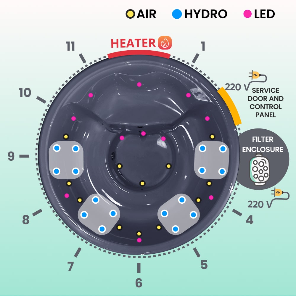 All-inclusive hot tub with a fibreglass insert. This configuration includes: